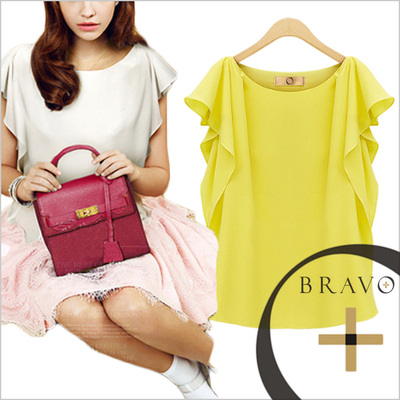 荷葉飛飛袖純色百搭雪紡上衣 共二色 Bravo