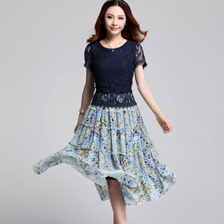【I-Seoul正韓中大碼】9214蝴蝶蕾絲拼接棉假兩件洋裝(白色)
