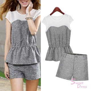 【預購 Sweet Dress】灰白拼色修身短褲套裝商品網址: http://www.momoshop.com.tw/goods/GoodsDetail.jsp?i_code=2825739&memi...
