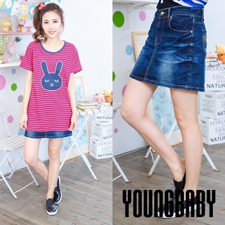 【YOUNGBABY中大碼】點點蝴蝶結珠珠繡英文牛仔裙褲(藍)商品網址: http://www.momoshop.com.tw/goods/GoodsDetail.jsp?i_code=2603155...