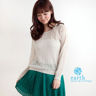 【earth music】後蝴蝶結鉤織上衣-象牙色(16131CB1040100106)