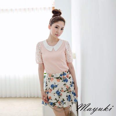 東京著衣-MAYUKI 娃娃領透膚蕾絲袖上衣-S.M(共二色)