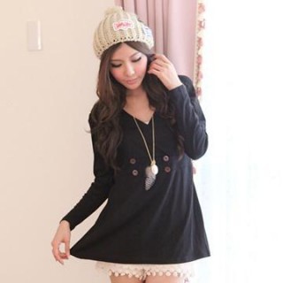 【S-7L熊衣褲語】抓皺交叉V領配木釦洋裝A68(黑、紫M-2L)