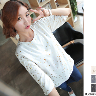 【預購NJ-style】NEW韓國金屬點點七分袖T恤(3色 F)商品網址: http://www.momoshop.com.tw/goods/GoodsDetail.jsp?i_code=282403...