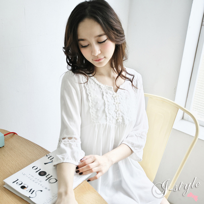 立體小花刺繡蕾絲V口娃娃薄棉衫-I-sTyLe商品網址: