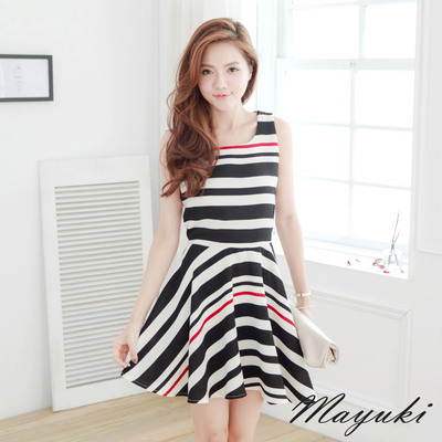 東京著衣-MAYUKI 條紋傘狀無袖短洋裝-S.M(共二色)