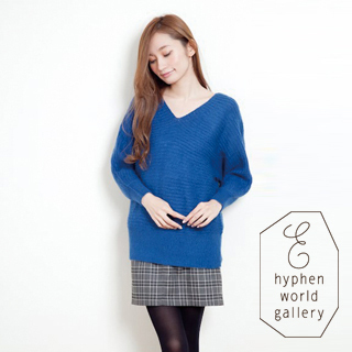 【☆E hyphen ☆】橫織V領針織中長版上衣-深藍色(20134GE2000156106)