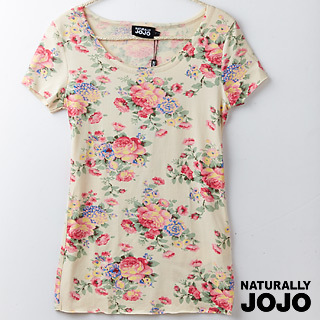 【NATURALLY JOJO】甜美滿版小碎花短袖T恤(米色)