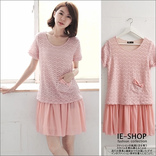 【IE-SHOP】三角蕾絲雪紡紗裙洋裝
