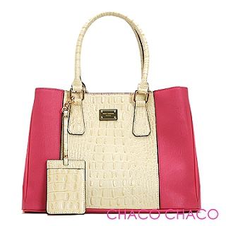 【預購CHACO韓國】韓製LINDSAY併接配色蟒紋2用手提包no.3487(活力粉色)