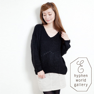 【☆E hyphen☆】V領造型針織上衣-黑色(20134CB2070112106)