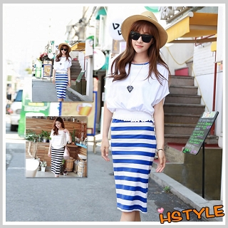 【創翊韓都】洋裝-條紋兩件式短袖洋裝EV3373(現貨+預購)