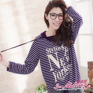 【I-meteor中大尺碼】美式印字條紋T+連帽背心兩件式(焦點紫)