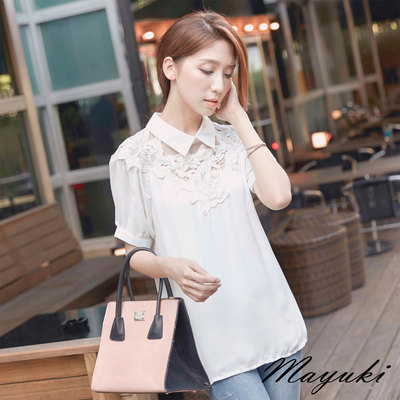 東京著衣-MAYUKI 綴珠織花襯衫領雪紡上衣-S.M(共一色)