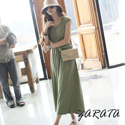 純色露肩袖開口長連衣裙(綠色)-ZARATA商品網址: