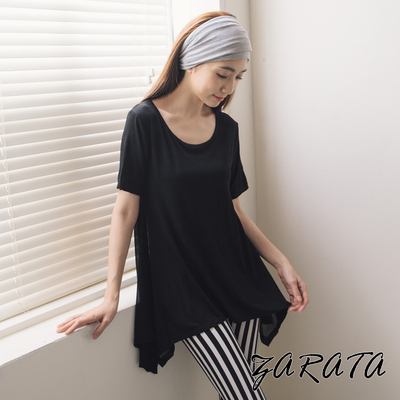 上衣-素面不規則A字拼接雪紡長T-黑ZARATA商品網址: