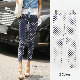 【現貨Korea-辛】韓國俏皮圓點貼腿褲(深藍M)