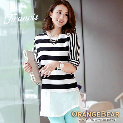 • 搶眼個性感的經典黑白配色,配上不退流行的條紋圖案,馬上給人一種時尚韓妞的時髦印象!