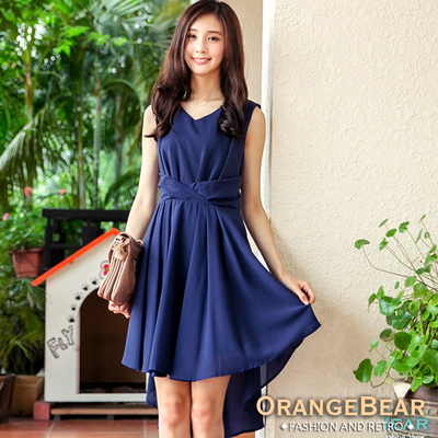 OB嚴選-收腰綁帶前短後長洋裝?共二色