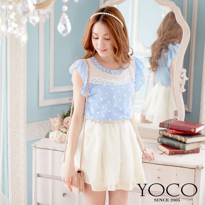 東京著衣-YOCO 綴珠圓點紗荷葉袖上衣(共三色)