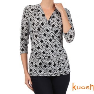 【kuosh】美國進口菱格幾何七分袖上衣(現貨+預購)商品網址: http://www.momoshop.com.tw/goods/GoodsDetail.jsp?i_code=2304239&mem...