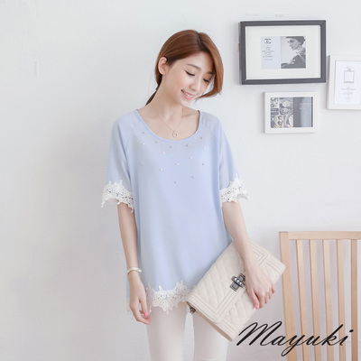 東京著衣-MAYUKI 釘珠蕾絲花邊雪紡上衣-S.M(共三色)