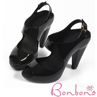 【Bonbons】謬思女神夏日繫懷果凍跟鞋(性感黑36-39)