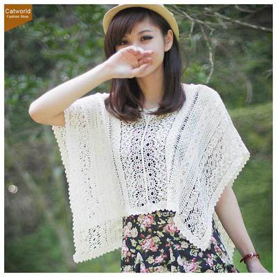 Catworld浪漫滿滿布蕾絲簍空短版T杏色