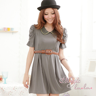 【Magic la.la.】花網蕾絲小圓領洋裝-S077A(氣質灰)