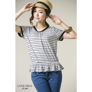 【艾之田LOVE FIELD】休閒風彈性條紋上衣(黑)