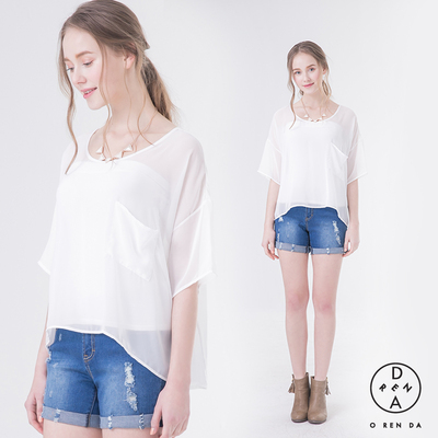 ORENDA-大口袋寬版雪紡上衣-S.M-白
