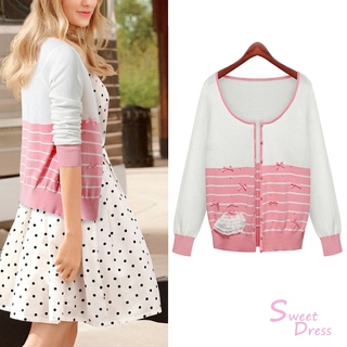 【預購 Sweet Dress】立體蝴蝶結粉白條紋針織外套