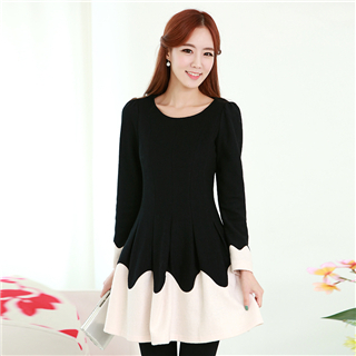 【菟絲花】韓版時帘源u撞色修身氣質特色呢料連衣裙打底裙(大尺碼)商品網址: http://www.momoshop.com.tw/goods/GoodsDetail.jsp?i_code=296372...