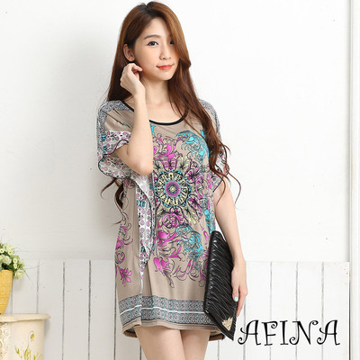 我覺得冰絲涼感圖樣洋裝-橄欖花 AFINA不僅穿起來合身舒適,自己感覺也變很有時尚的FU!!(哈哈哈!!!!)