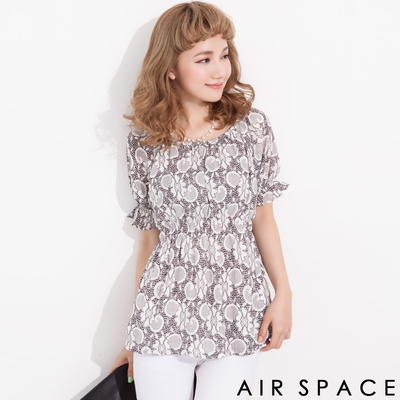AIR SPACE 彩色花紋平口縮腰上衣(魅力黑)