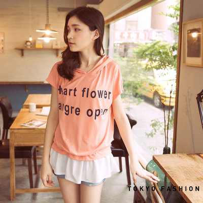 東京著衣 字母連帽拼接裙襬上衣(共三色)