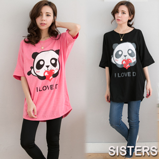 【SISTERS】大頭熊熊愛心印花寬版長上衣(共二色)
