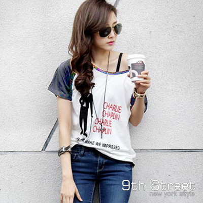 9th Street 韓版印圖拼接袖上衣