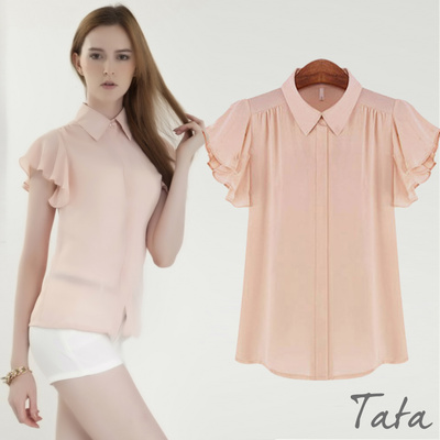 素面翻領荷葉袖雪紡上衣 共二色 TATA
