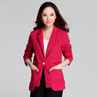 【菟絲花】韓版女裝修身長袖小西裝單扣女外套(大尺碼)
