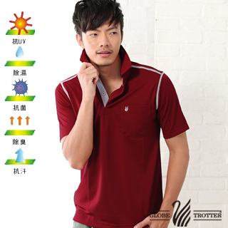 【遊遍天下】男款抗UV吸濕排汗機能POLO衫GS015暗紅(M-3L)