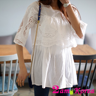 【預購2am Korea】清新純白洞洞花紋上衣(象牙白)