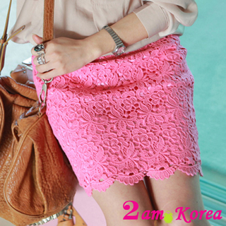 【預購2am Korea】精緻緹花波浪下擺窄短裙(共三色)