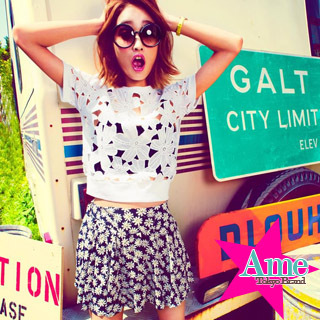 【預購 Ame Tokyo Brand】VIVI雜誌 傘擺飄逸小雛菊彩繪俏麗百搭短褲裙(共2色)