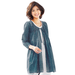 【現貨 日本portcros】假二件花邊圓點長版襯衫(藍-L)