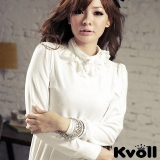 【KVOLL中大尺碼】白色人氣百搭立領蝴蝶結針織上衣