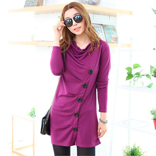 【菟絲花】斜黑扣抓折長上衣(大尺碼)