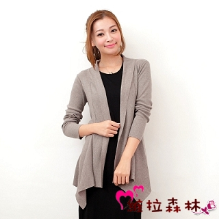 【維拉森林中大尺碼】深灰色開襟不規則罩百搭衫外套