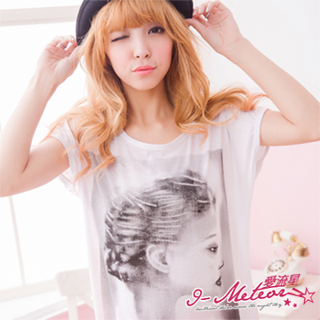 【I-meteor中大尺碼】側臉印圖亮粉棉質上衣PA1619(魅力白)