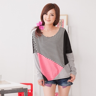 【衣心衣意中大尺碼】流行首選 -顯瘦美感接色上衣 2色(黑-紫SI1A1070)
